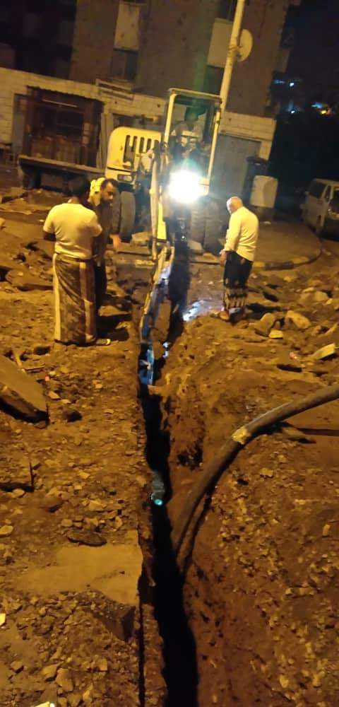 وتابع قائلا باشراف مباشر من الاخ المدير العام م. فتحي السقاف ونائب مدير المنطقه فتحي الصنعاني ومجهود عمال الحفريات منطقه كريتر استطعنا اصلاح مواسير الصرف الذي انكسر وادى الى طفح المجاري.