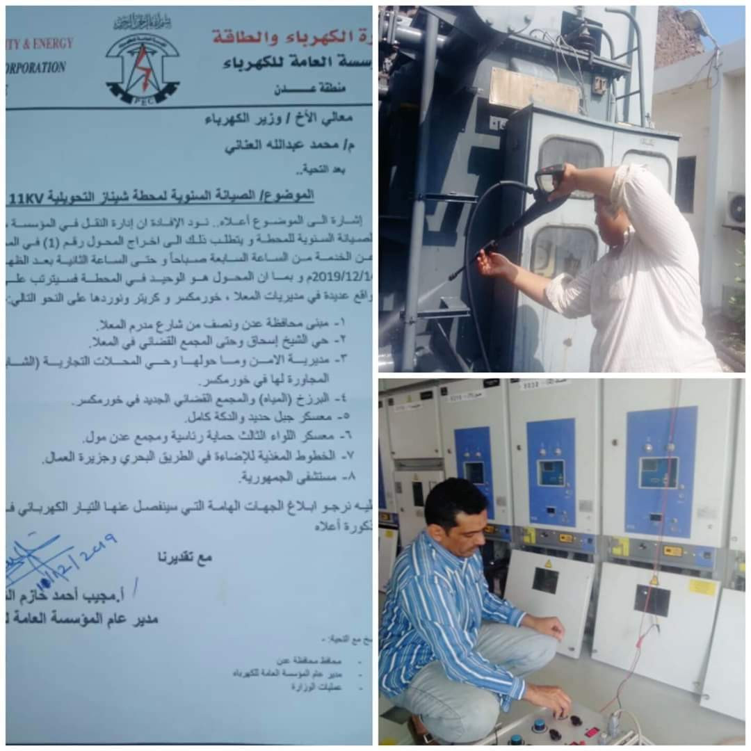 اصدرت المؤسسة العامة للكهرباء تنويه للمواطنين والجهات الحكومية إبتداءً من يوم السبت الموافق 14/12/2019 ومن الساعة 7:00 صباحاً إلى الساعة 2:00 ظهرا سيتم إطفاء الكهرباء على نصف احياء مديريات المعلا خورمكسر كريتر .