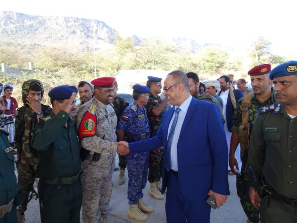 وكان في استقباله بالقصر الجمهوري، محافظ محافظة المهرة الشيخ راجح سعيد باكريت، والأمين العام للمجلس المحلي بالمحافظة سالم عبدالله نيمر وعدد من الوكلاء والمسئولين والقيادات العسكرية والأمنية.