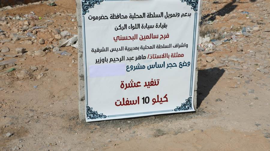 وضع محافظ محافظ محافظة حضرموت قائد المنطقة العسكرية الثانية اللواء الركن فرج سالمين البحسني صباح اليوم حجر الأساس لمشروع سفلتت عشرة كيلومتر في مدينة الديس الشرقية وحجر أساس آخر لمشروع بناء حديقة الطفل بالمدينة بتمويل من السلطة المحلية بالمحافظة.