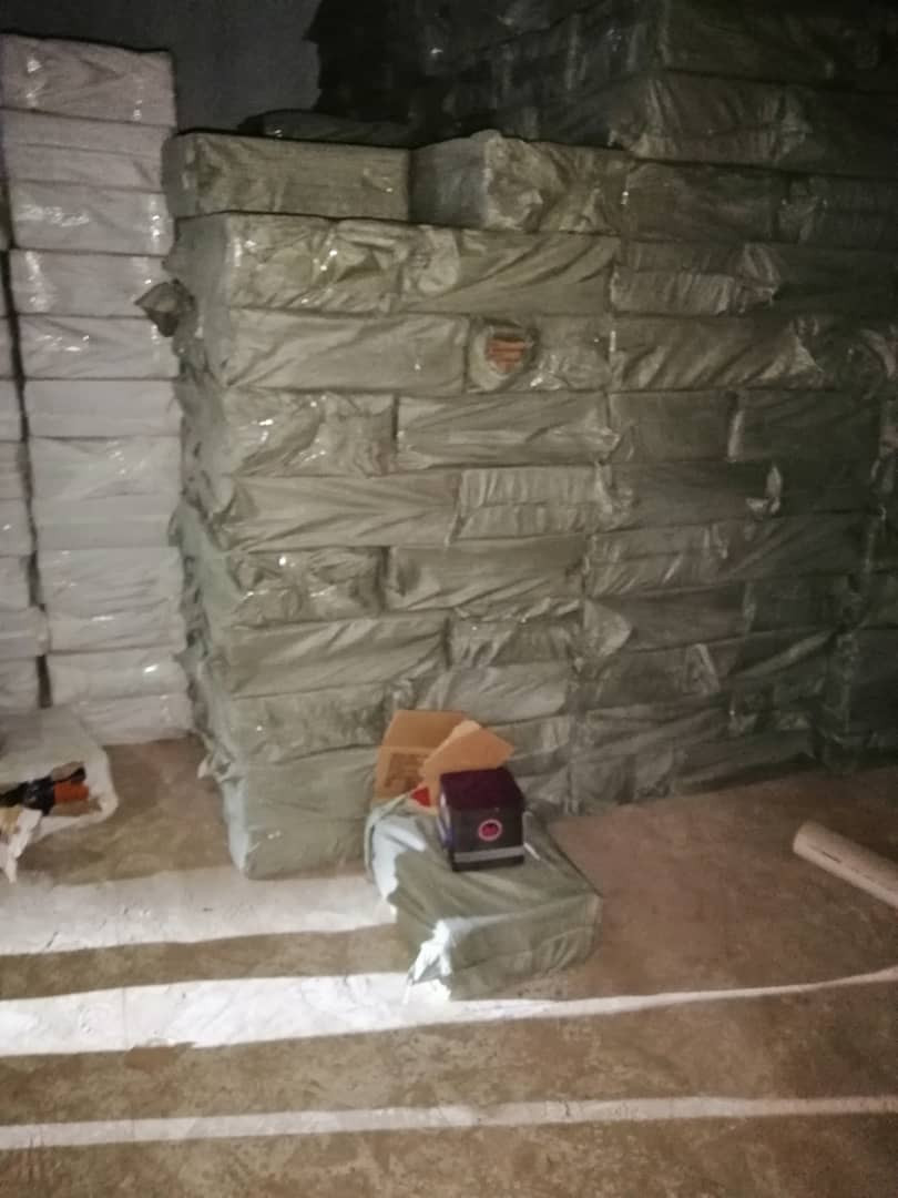 و أثناء التحقيق أتضح ان المخازن تابعة للتاجر (ع.م.ز) من أبناء محافظة تعز، وأن المهربات جائت من راس العارة على متن حاويات قبل 3 أشهر وسيتم نقلها إلى صنعاء وبقية المحافظات شمالية.