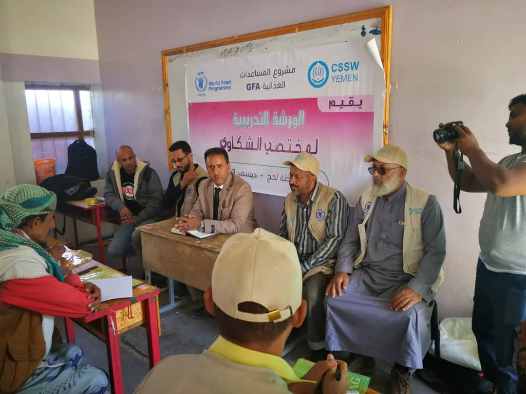 وقد قام الأستاذ عبدالله مناف مسؤول المتابعة والتقييم بمحافظتي لحج وتعز بتدريب ضباط الشكاوى على فهم طبيعة عملهم والمسؤليات المناطة بهم في إيصال صوت المستفيدين وشكاواهم إلى الجهات المسؤولة عن المشروع كما أطلعهم على طبيعة عمل البرنامج بشكل عام