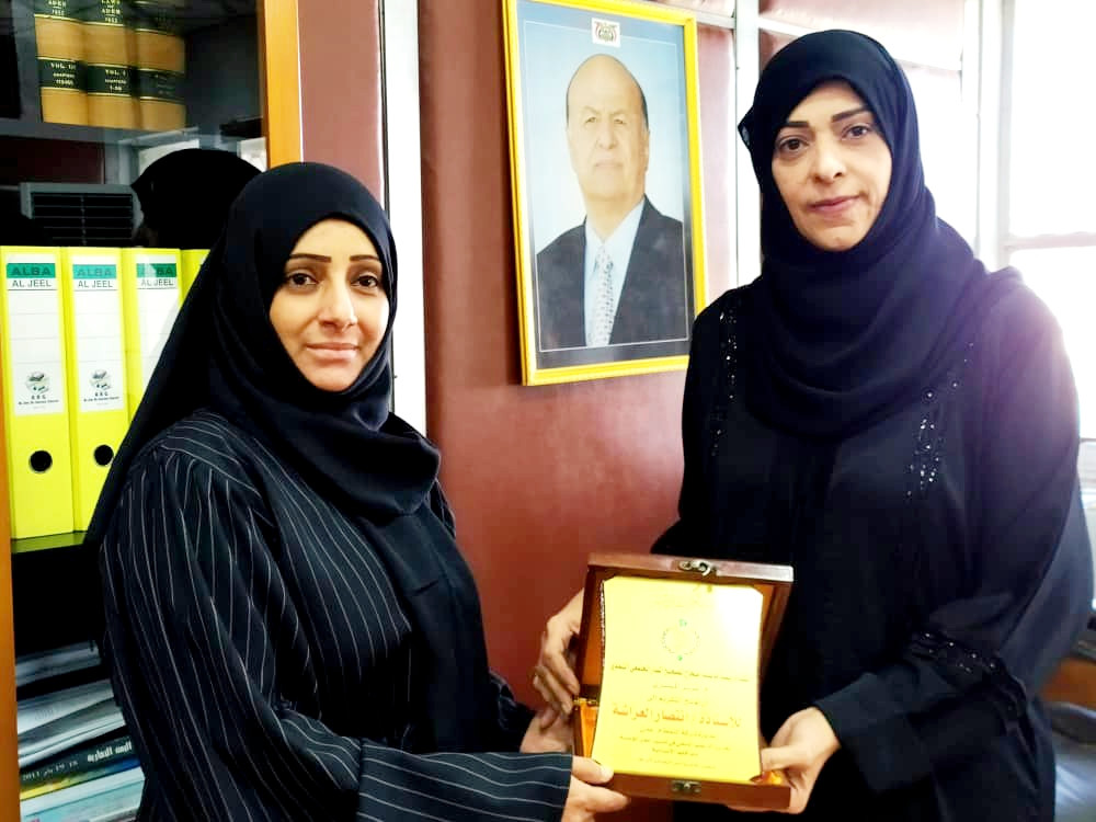وقدمت الاستاذة عبير الميسري رئيسة مؤسسة إصحاح درعا تكريميا للاستاذة انتصار العراشة مدير عام شركة النفط بعدن مشيدة بمواقفها وجهودها في دعم عمل المؤسسة.