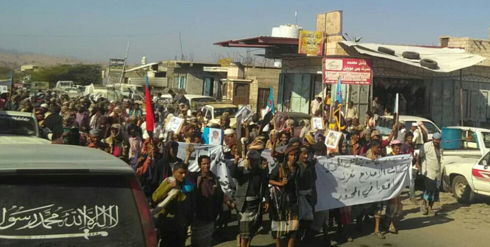 نظم المجلس الانتقالي تظاهرة بمديرية المحفد في أبين ضد تواجد قوات الجيش في المديرية.