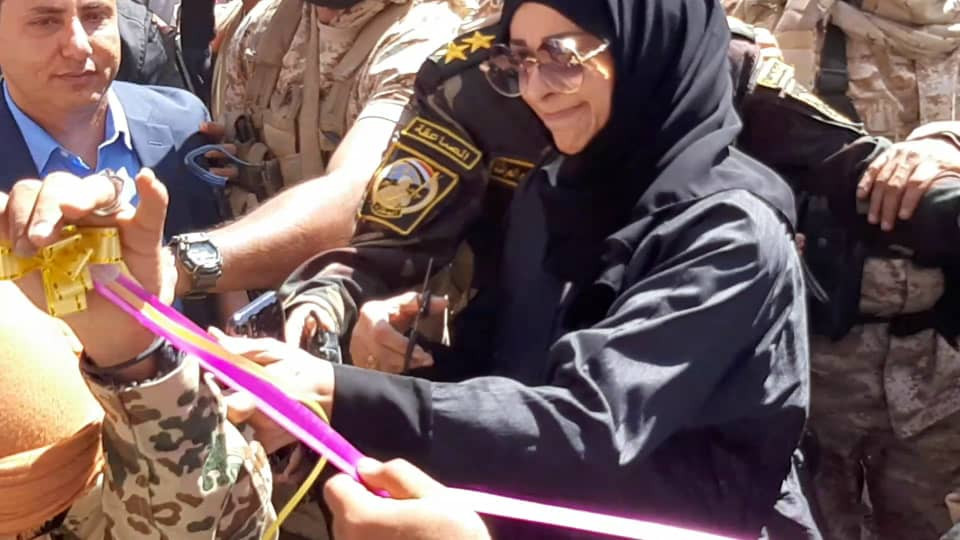 واثناء وصولها قامت بقص الشريط في افتتاح محطه إكسان للمشتقات النفطيه وسط مدينة قعطبة ، ويأتي افتتاحها ضمن خطة و نشاط شركه النفط لمحطات الوقود المدعومة من قبل الشركه في المحافظات الجنوبية المحررة من الغزو الفارسي المجوسي وذلك في عملية تأتي نحو وقف احتكار السوق من قبل بعض محطات المحروقات الاخرى .