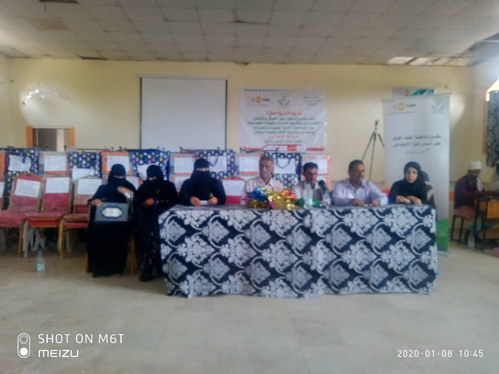 ضمن مشروع توفير سبل العيش والتمكين الاقتصادي وتقديم خدمات متعددة القطاعات عبر المساحات الامنه للنساء والفتيات نظم اتحاد، نساء اليمن فرع محافظة أبين صباح اليوم الاربعاء 8 يناير بقاعة الاتحاد بمدينة زنجبار حفل تكريمي وتوزيع مشاريع صغيرة لعدد (48) امرأة في مجالات الخياطة والكوافير، والمعجنات والبخور كما تم تكريم عدد من مدراء العموم الشخصيات القيادية والتربوية والاجتماعية والاعلاميين والقيادات النسوية الذين كان لهم دور فاعل بالنهوض بالمرأه ودعم انشطة الاتحاد..