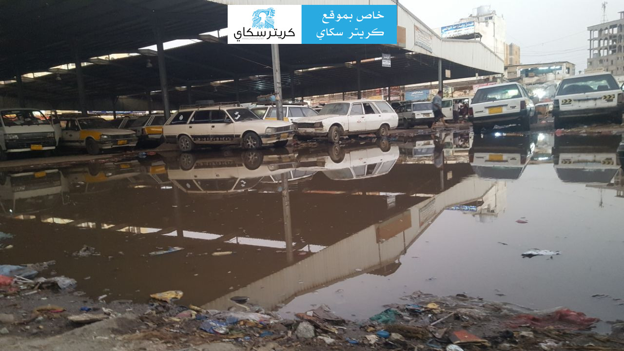 وحصل كريتر سكاي على صورة يظهر فيها طفح المجاري تغرق فرزة الهاشمي وتحاصر سوق القات ومحال تجارية.