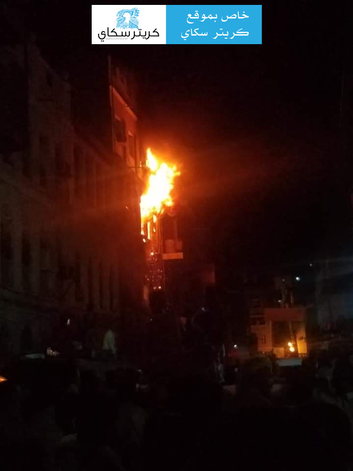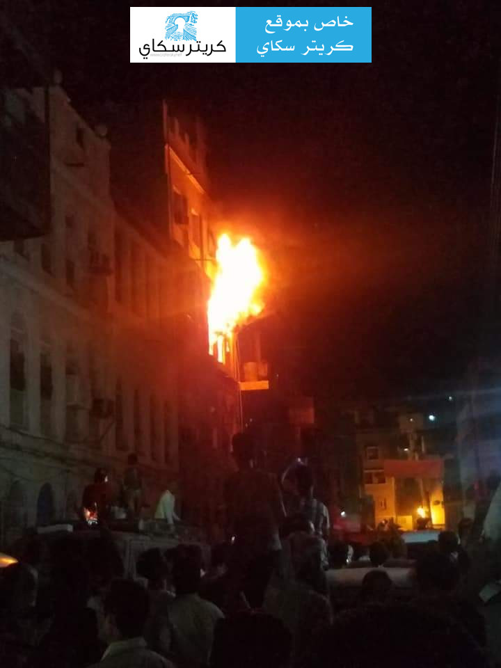 وقال مواطنون لكريتر سكاي:سيارات الدفاع المدني تحاول اخماد النيران التي اندلعت بمنزل يتكون من ٣ طوابق بالقرب من محل العزعزي لبيع الكراعين بحارة حسين بكريتر.