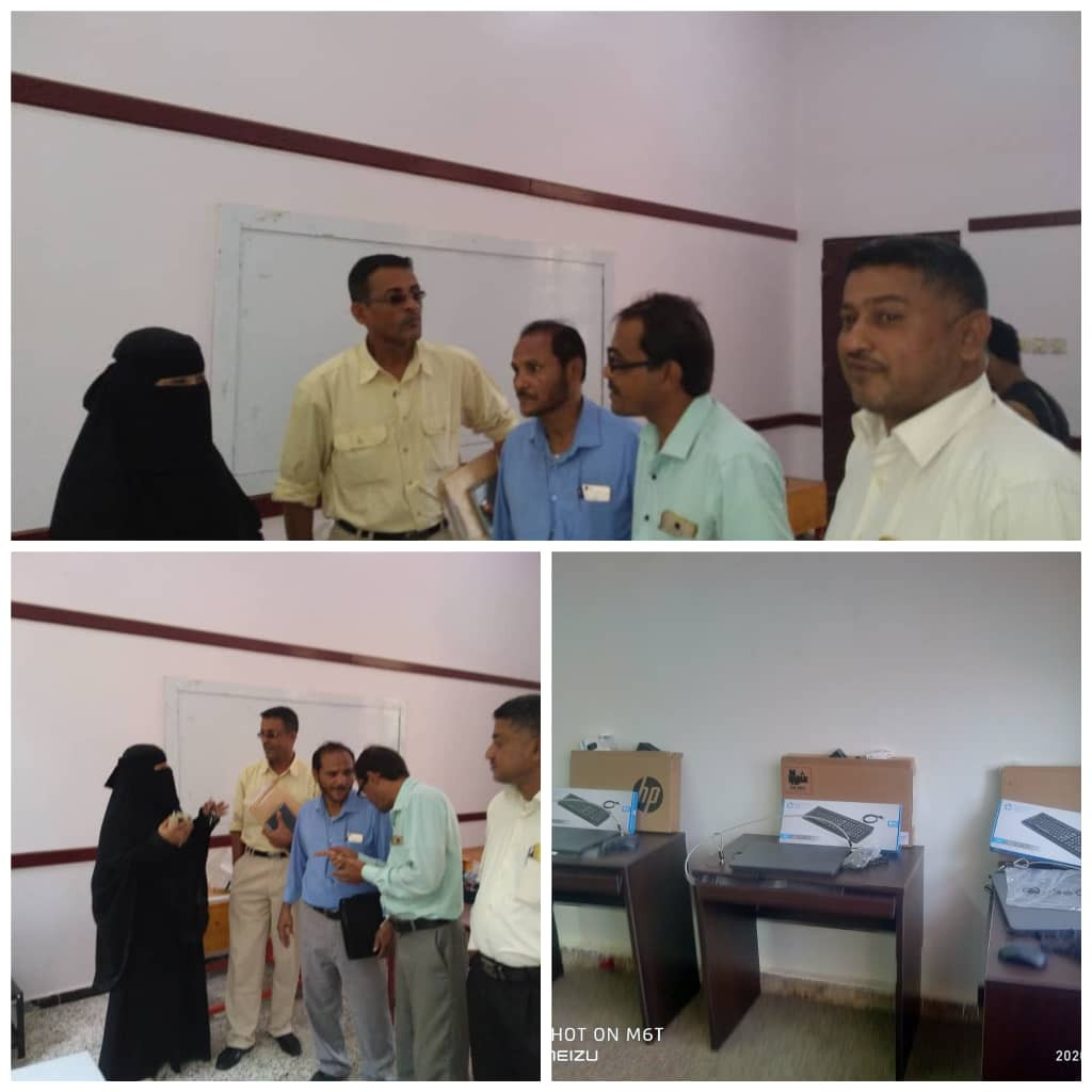 حيث تفقدا سير العمل في تركيب معمل الحاسوب وملحقاته والذي يقوم به فريق هندسي من منظمة الشراكة العالمية للتعليم (اليونيسف) بتركيب الحاسبات عدد (7) ومنظومة الطاقة الشمسية ومودم واي فاي..