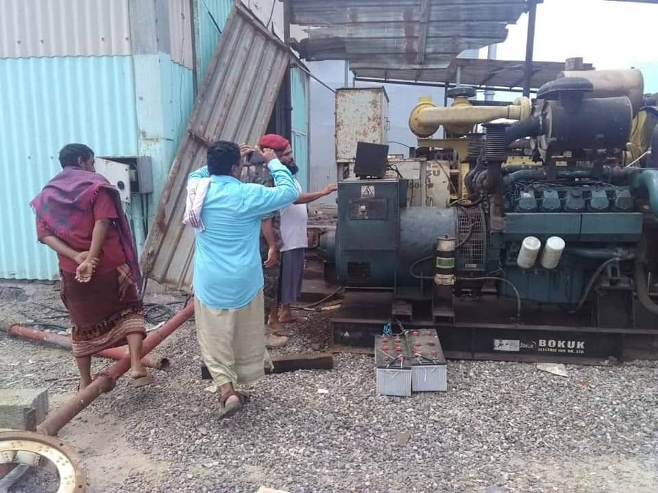 واضاف بعد ضغوطات كبيره وتواصل مستمر مع الاخ فتحي السقاف مدير مياة عدن تم احضار مولد جديد بقوة ٤٦٠ كيلو حيث هناك ايضا وجدنا ٣ مضخات من أصل ٥ غير صالحات للعمل وبحاجه إلى صيانه متكامله ومضخه اخرى وهي الرابعه بحاجه الى صيانه جزئيه ولم تكن صالحه للعمل ومضخه واحده التي كانت سليمه وهي الخامسه فقط .