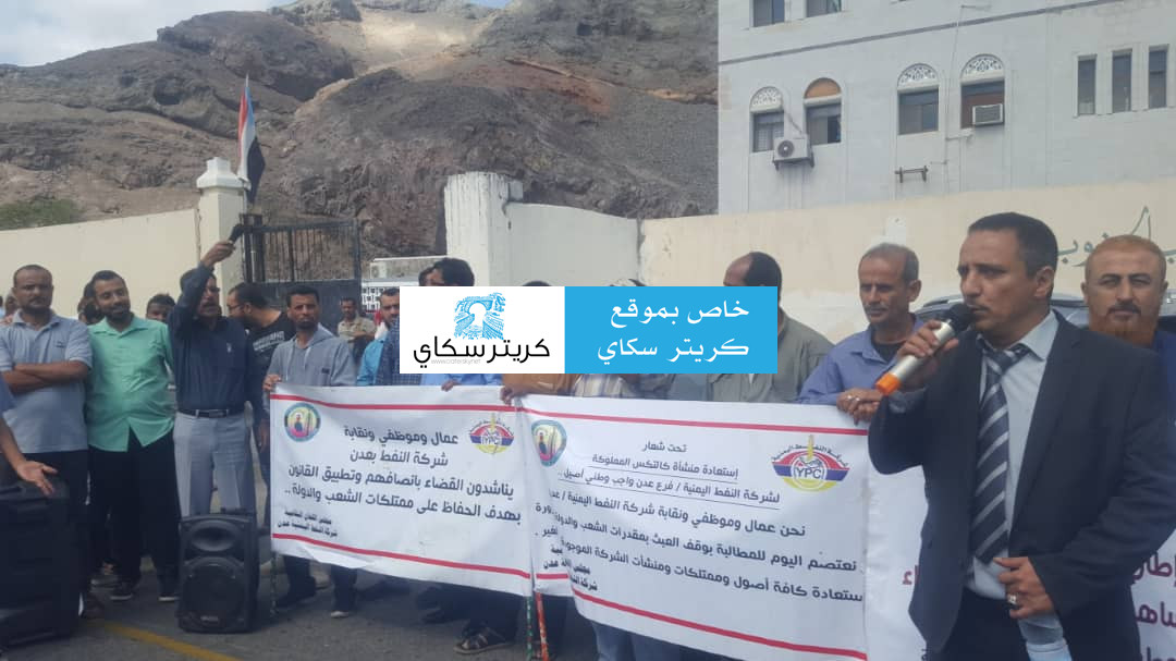نظم العشرات من موظفي شركة النفط فرع عدن مظاهرة امام محكمة الاستئناف للمطالبة باستعادة منشاة كالتكس.
