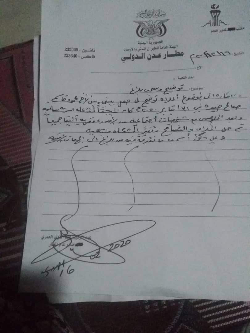 تمكنت شخصيات أجتماعية بعدن مساء اليوم الأحد من وضع نهاية للخلاف وسوء التفاهم الذي حصل بين مدير عام مطار عدن الدولي الاستاذ عبدالرقيب العمري و النقيب محمود صبيرة في بداية شهر فبراير .