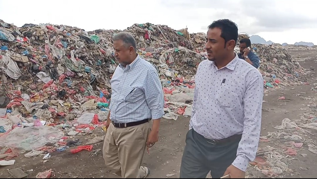 تفقد المدير العام التنفيذي لصندوق النظافة والتحسين بمحافظة عدن المهندس قائد راشد أنعم ، سير العمل في المكب التحويلي للقمامة بمنطقة الحسوة في مديرية البريقة .