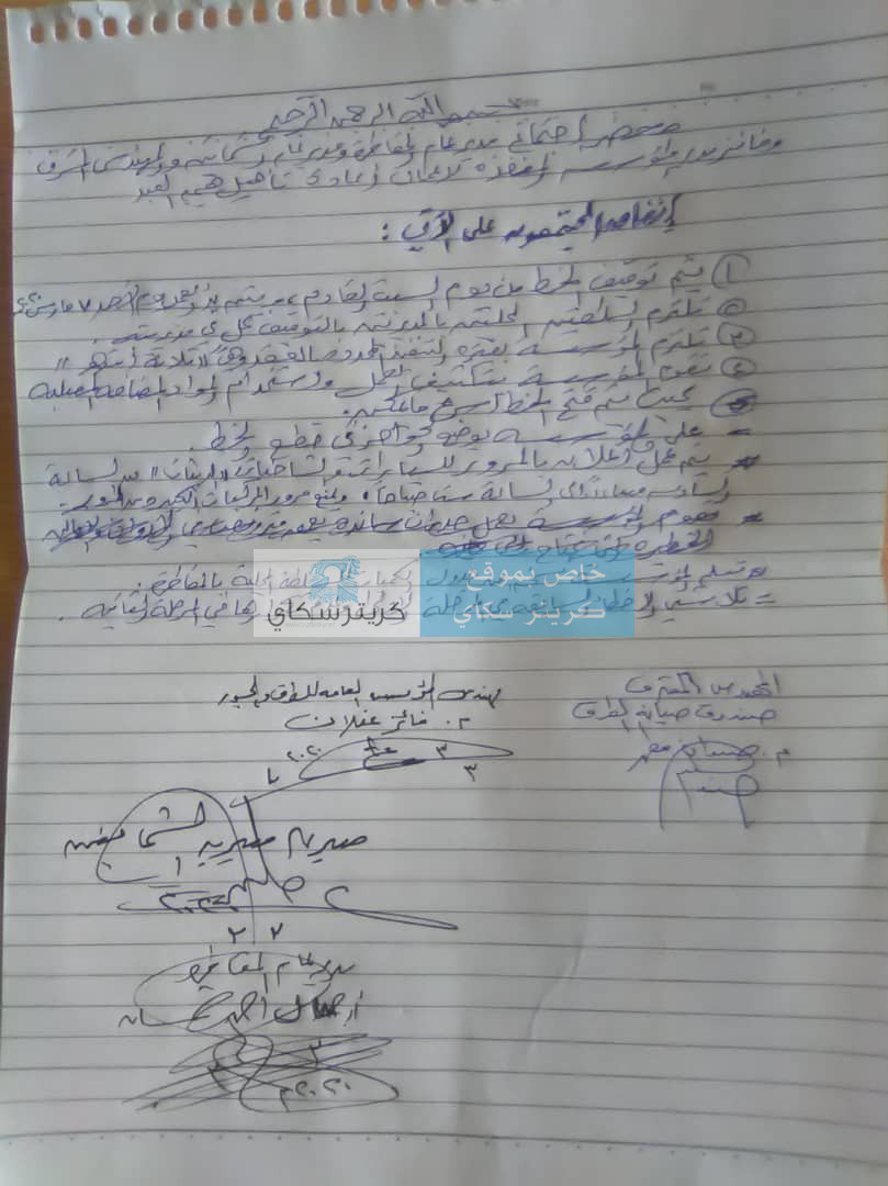حصل كريتر سكاي على نسخة يظهر فيها مسودة الاتفاق بين المؤسسة العامة للطرق والجسور والسلطتين المحليتين بالمقاطرة والشمايتين تحديد مسؤلية كل طرف والمطلوب تنفيذه فقط.