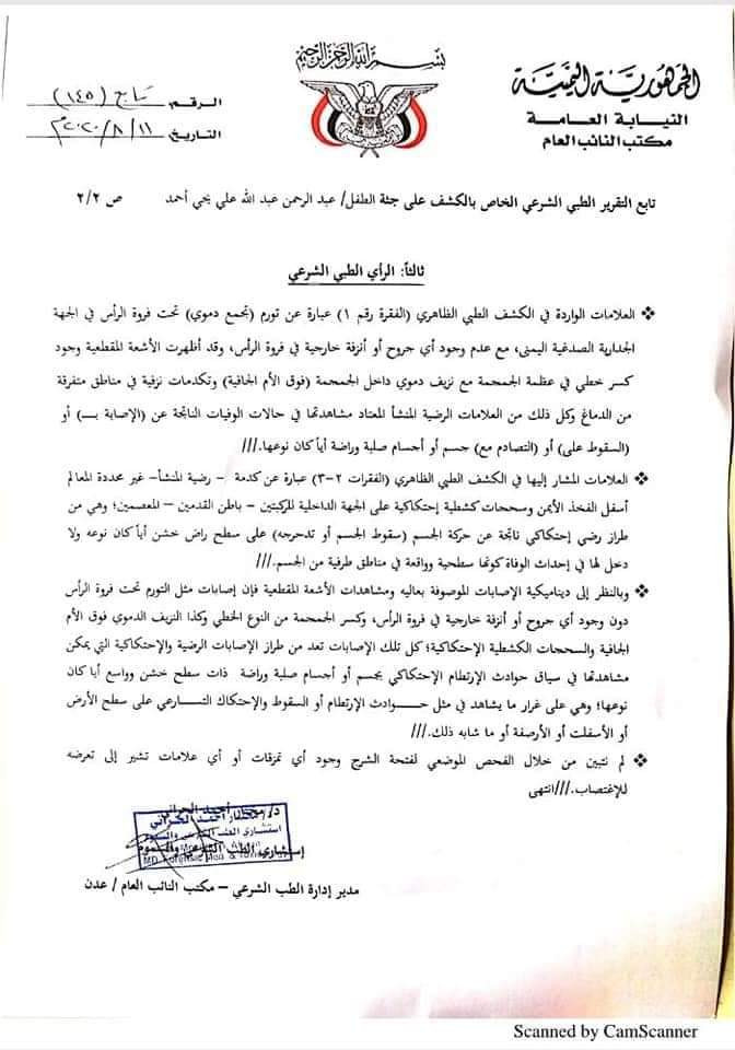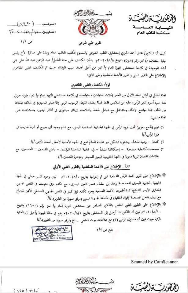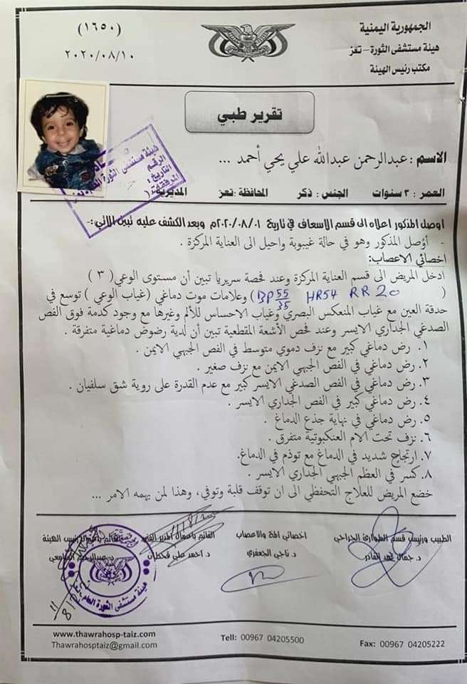 كشف تقرير الطب الشرعي لحالة الطفل" عبدالرحمن" حقيقة تعرضه للاغتصاب في تعز.