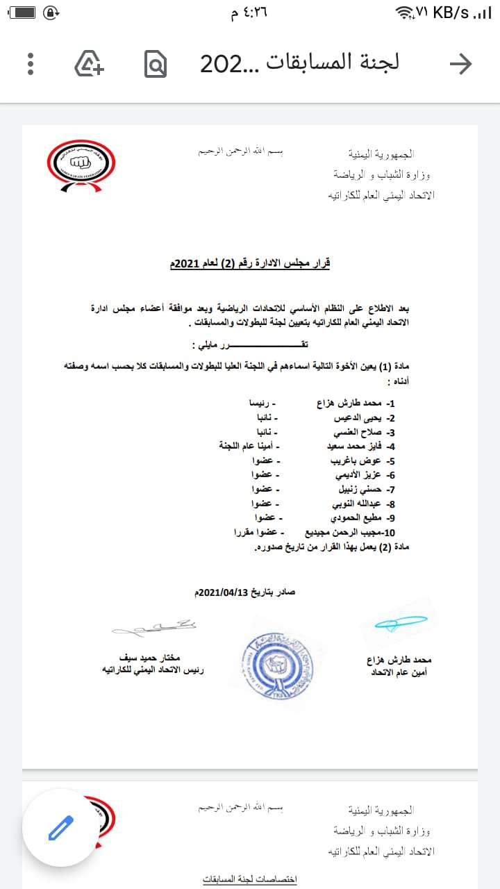 تقدمت مجلس إدارة نادي الفجر الجديد بالكود بإحر التهاني والتبريكات للاستاذ/ يحي الدعيس رئيس اتحاد الكاراتيه بابين بمناسبة تعيينه نائبا لرئيس لجنة البطولات والمسابقات بالاتحاد العام للكاراتيه بالجمهوريه.