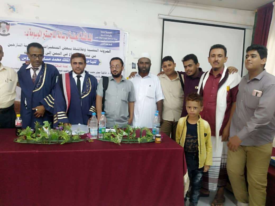 وكانت اللجنة مكونة من أ. د/وهيب عبدالله سعد رئيساً ومناقشاً خارجياً (جامعة أبين) و أ. مشارك. د/فاكهة جعفر محمد عضواً ومشرفاً علمياً (جامعة عدن) و أ.مساعد د/ جلال عبده سعيد الشعبي عضواً ومناقشاً خارجياً (جامعة عدن).