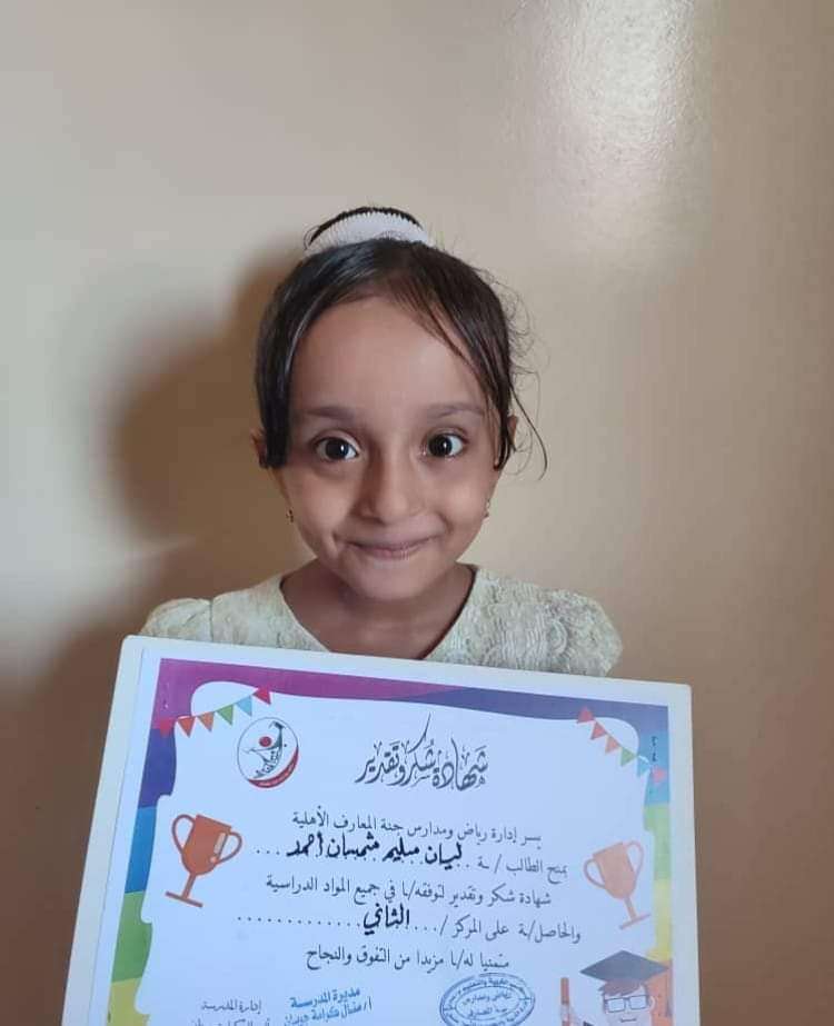 بمناسبة تفوقها الدراسي وحصولها على المركز الثاني في شهادة الفصل الأول بالصف الأول الابتدائي